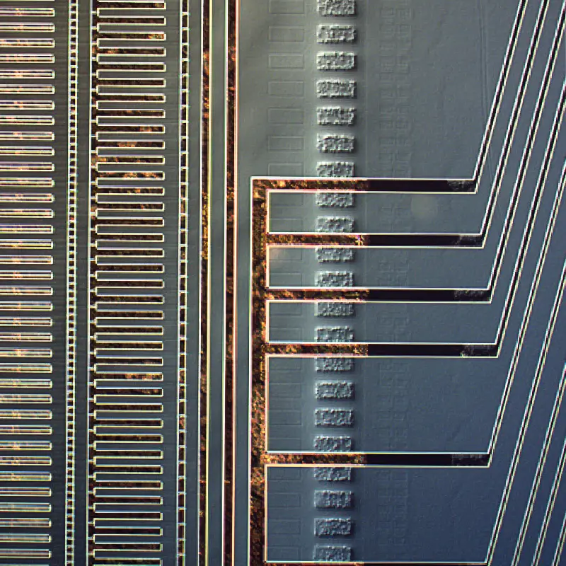 Những chỗ gồ ghề nhỏ li ti trên bề mặt mà không thể nhìn thấy trong trường sáng, có thể được phát hiện bằng cách sử dụng phụ kiện DIC để tạo nền tương phản cao. Nó được sử dụng rộng rãi để kiểm tra các hạt dẫn điện của màn hình LCD, vết xước trên bề mặt đĩa chính xác.