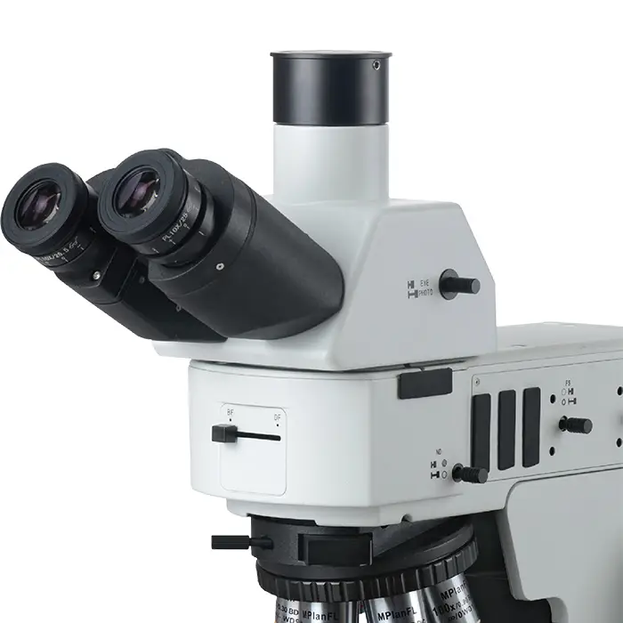 Đầu ba thị kính với ảnh đảo ngược, tỷ lệ chia ảnh: Hai thị kính: Ba thị kính = 100:0 hoặc 20:80 hoặc 0:100. Ngoại trừ việc tập trung 100% ánh sáng vào ống thị kính hoặc ống camera, còn có một tùy chọn khác là tập trung 20% ​​ánh sáng vào ống thị kính và 80% vào ống camera, cho phép quan sát qua thị kính và xuất ảnh cùng một lúc.